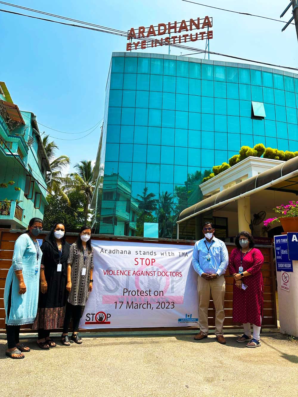 In response to the recent atrocities committed against doctors across the country, Indian Medical Association in collaboration with thousands of doctors and institutions organized a mass protest this day. Aradhana Eye Hospitals stood with IMA and protested strongly against violence of any sort. Patients with emergencies were catered to. No routine check-ups were done as a sign of protest against this violence. Aradhana hopes for a safer environment for doctors with strict protocols laid down by the local government bodies for ensuring safety of sincere doctors who only want to help all the patients who come to the hospital.